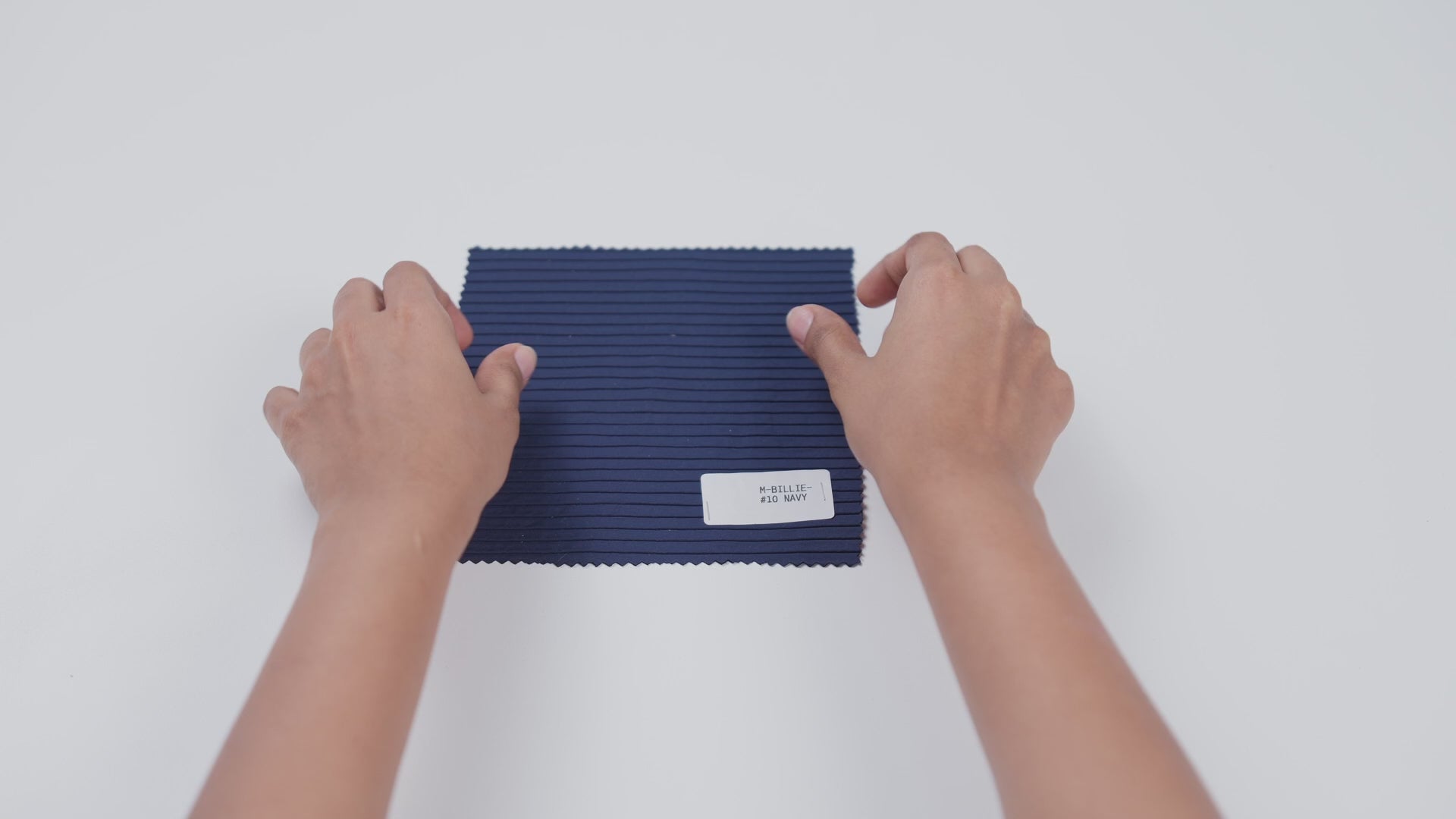 BILLIE is a poly textured fabric featuring fine vertical rib detailing across the surface. The structured linear texture adds depth and dimension while maintaining a soft, flexible feel. Medium weight with good shape retention, it is ideal for dresses, co ord sets, skirts, and contemporary structured silhouettes.