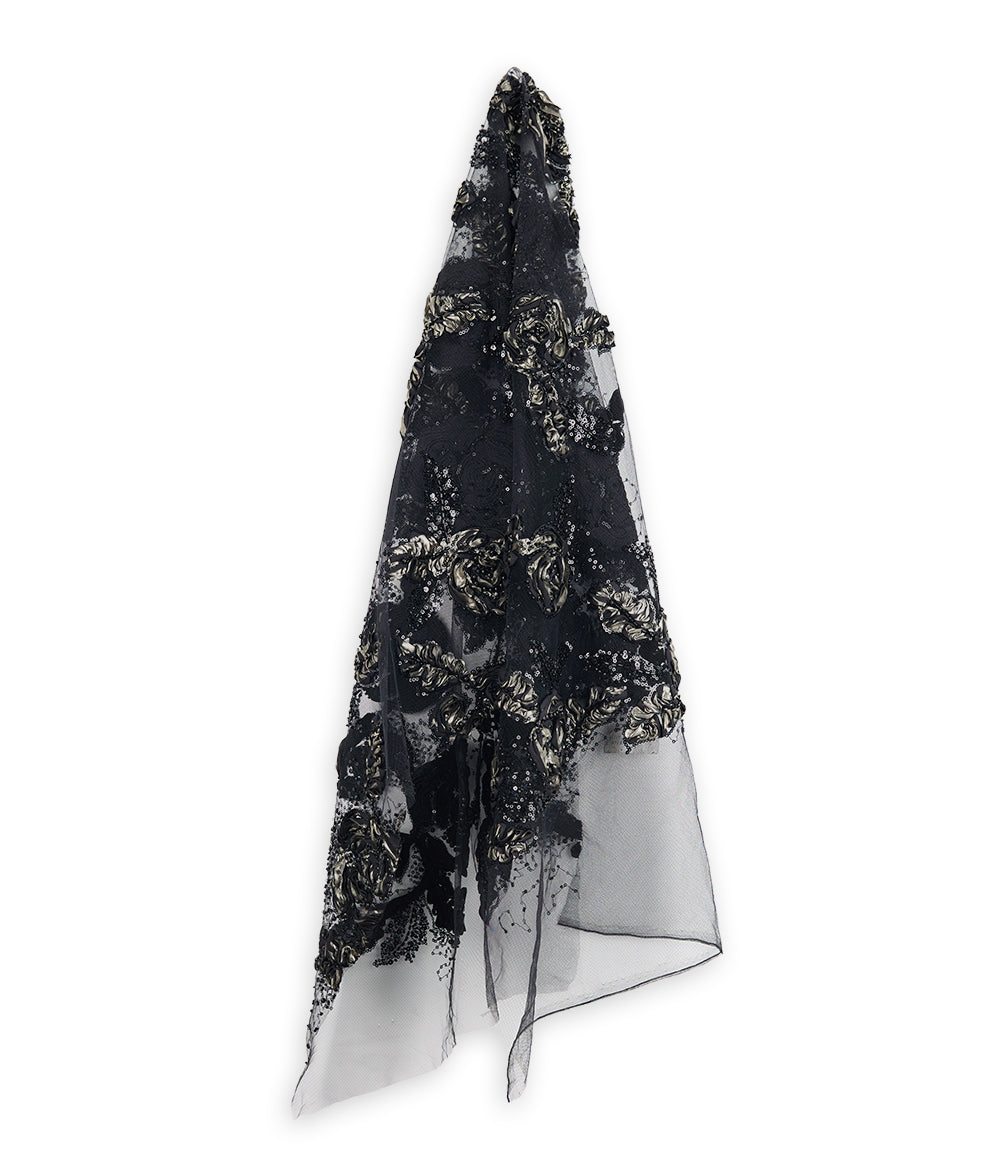 25DY03174 is a net base fabric featuring dimensional rose inspired floral embroidery developed with sculpted 3D petals. Each flower is formed using foil finished elements that add depth, sheen, and a luxe tactile feel. The floral clusters are further enriched with layered embroidery using mixed sequin sizes and finely placed beads, creating contrast between structure and sparkle. The overall layout feels organic yet balanced, making 25DY03174 ideal for couture gowns, statement panels, luxury blouses, and high impact occasion wear where texture and three dimensional detailing are the focus.
